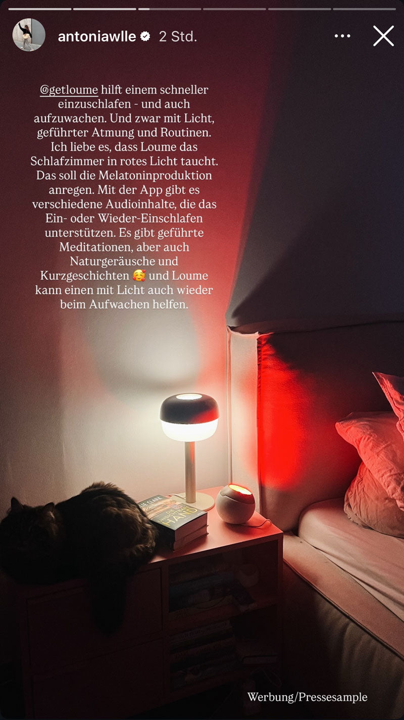 Ich habe Loume jetzt 2 Nächte getestet und bin wirklich überrascht. Ich bin beide male so unglaublich gut und ruhig eingeschlafen und morgens so erholt wach geworden. Normalerweise fühle ich mich morgens eher gerädert und würde meinen Wecker am liebsten an die Wand schmeißen. Aber gestern und heute war es einfach schön, sanft durch das Loumelicht aufzuwachen und direkt so wach und erholt zu sein. ich freue mich schon richtig auf mein Schlafritual heute abend.