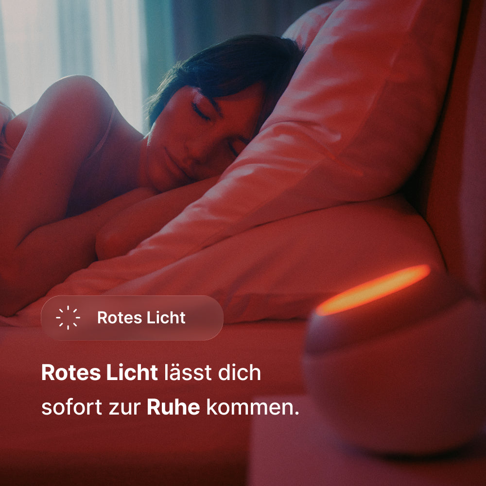 Zum Ablauf: Abends erinnert mich das Gerät an meine Schlafenszeit. Dafür leuchtet es orange / rot und zeigt mir, dass ich in ungefähr 15 Minuten ins Bett sollte. Das ist nicht aufdringlich, sondern eher sanft und ein schöner Abschluss für den Tag. Ich habe in der letzten Zeit gemerkt, dass mir schon alleine diese feste Routine gut tut.